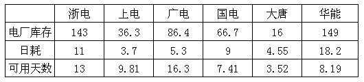 2009年12月30日直供電廠煤炭庫存統(tǒng)計(jì)