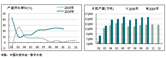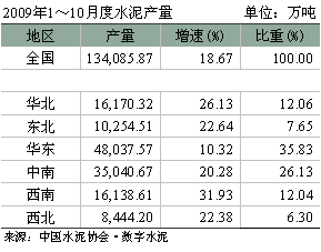 10月當(dāng)月全國(guó)水泥產(chǎn)量為15,635萬噸,再次刷新單月最高產(chǎn)量紀(jì)錄;同比增長(zhǎng)23.85%,增速比9月減緩1.2個(gè)百分點(diǎn)。1~10 月份累計(jì)生產(chǎn)水泥13.4億噸,同比增長(zhǎng)達(dá)18.67%。這主要得益水泥行業(yè)在9、10月是傳統(tǒng)需求旺季。