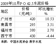 中南地區(qū)的水泥價(jià)格在廣州市場(chǎng)帶動(dòng)下大幅度上漲。其中廣東廣州地區(qū)的水泥價(jià)格第四次大幅度上調(diào),幅度為40~50元/噸,P?O 42.5水泥的價(jià)格攀升至420元/噸。主要是西江水位下降,導(dǎo)致廣西水泥只能通過汽車運(yùn)輸,運(yùn)輸成本大幅上升;同時(shí)市場(chǎng)需求一直呈現(xiàn)持續(xù)上升態(tài)勢(shì),使各企業(yè)供應(yīng)緊張,個(gè)別企業(yè)甚至空庫(kù)。在這兩大因素的推動(dòng)下,廣州水泥價(jià)格環(huán)比增長(zhǎng)了10.53%。