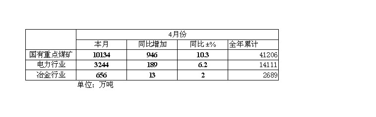 2008年4月我國煤炭銷量情況統(tǒng)計(jì)