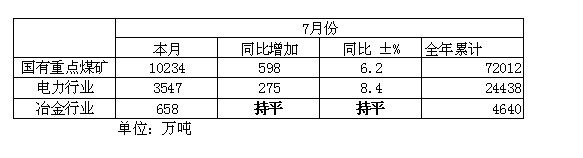 2008年7月我國煤炭銷量情況統(tǒng)計(jì)