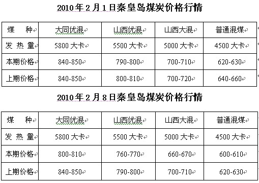 據(jù)秦皇島市場(chǎng)研究人員李東新介紹,雖然自今年元月下旬以來秦皇島港煤炭交易價(jià)格開始下滑,到目前只有兩個(gè)星期的時(shí)間,時(shí)間雖然不長(zhǎng),但下降幅度之大是很少見的。據(jù)秦皇島煤炭市場(chǎng)網(wǎng)統(tǒng)計(jì),最近半月以來,秦皇島煤炭市場(chǎng)交易價(jià)格2月上旬和元月下旬相比,發(fā)熱量為4500大卡/千克的普通混煤價(jià)格下降了3%,發(fā)熱量為5000大卡/千克的山西大混煤炭?jī)r(jià)格下降了6%,發(fā)熱量為5500大卡/千克的山西優(yōu)混煤炭?jī)r(jià)格下降了4%,發(fā)熱量為5800大卡/千克的大同優(yōu)混價(jià)格下降了5%。附秦皇島煤炭?jī)r(jià)格行情比較表。