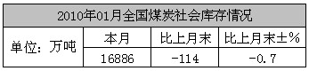 2010年1月全國煤炭社會庫存統(tǒng)計(jì)