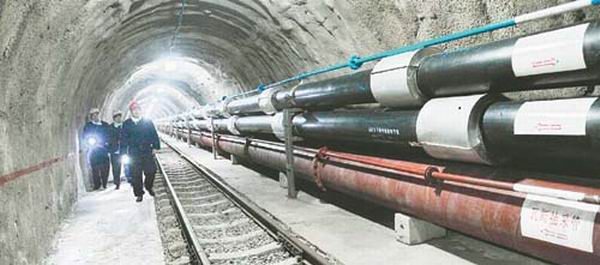 壓題照片:潘一礦南井-350副巷排列整齊的瓦斯抽采管道