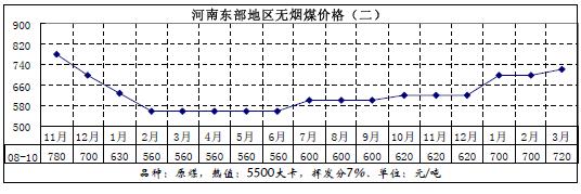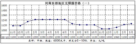 3月份華中地區(qū)煤炭價格變化圖