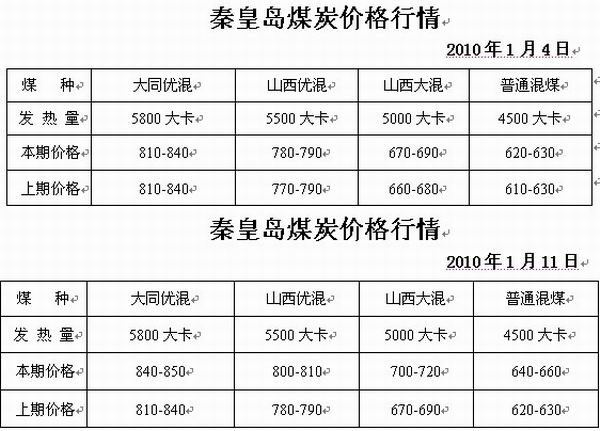 附:部分秦皇島煤炭價格行情統(tǒng)計表
