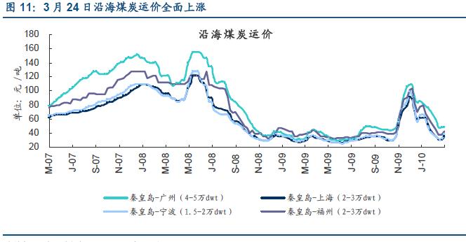 3月24日沿海煤炭運(yùn)輸線路運(yùn)價(jià)走勢(shì)圖