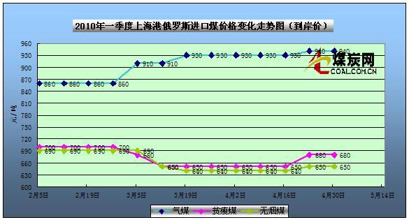 華東地區(qū):動力煤價格上漲較為明顯,其它煤種略有小幅波動。華東地區(qū)氣溫升高,加上世博會使得電煤需求水平增加。同時國際現(xiàn)貨煤價格大幅上漲,主要原因是亞洲和歐洲煤炭需求持續(xù)上升,加上近期中日雙方敲定2010 年度動力煤年度合同價格為115.5 美元/噸,同比上漲47%。這些將成為華東地區(qū)煤炭市場價格上漲的有力動力。