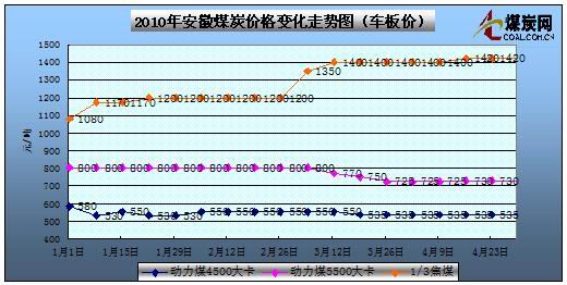 近期華東地區(qū)氣溫將逐步升高,加上世博的召開使得電煤需求水平增加,特別是安徽地區(qū)已經(jīng)開始進行夏季高峰存煤儲備,本周安徽地區(qū)動力煤平均上漲5.32%,無煙末煤上漲8.05%,華東其他地區(qū)動力煤價格也有1-2%的上漲。