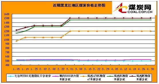 【黑龍江】黑龍江1/3焦精煤現(xiàn)出廠含稅價1200-1250元 /噸,主焦精煤、肥煤車板為1470元/噸、1510元/噸。黑龍江雞西、鶴崗和雙鴨山4500大卡動力煤車板含稅價450元 /噸,5000-5200大卡動力煤車板含稅價540元/噸相比上周上漲10元,七臺河5500大卡無煙混煤坑口價505元/噸相比上周上漲5元,鶴崗5000大卡無煙煤車板價530元/噸,6000大卡動力塊煤車板價675元/噸,氣煤坑口價735元/噸;雙鴨山氣精煤車板價950元/噸,5500大卡長焰煤坑口價475元/噸相比上周上漲15元。其余煤價保持穩(wěn)定。