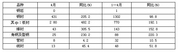 2010年1—4月鋼鐵產(chǎn)品出口情況 單位∶萬噸