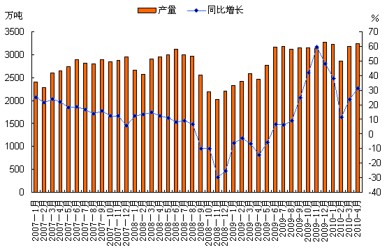 據(jù)統(tǒng)計數(shù)據(jù)顯示,2010年4月,我國共生產(chǎn)焦炭3244.6萬噸,比去年同期多生產(chǎn)776.4萬噸,同比增長31.5%;截止到今年4月份,全國累計生產(chǎn)焦炭12555.4萬噸,累計比去年同期增加2719.2萬噸,增長幅度為27.6%。