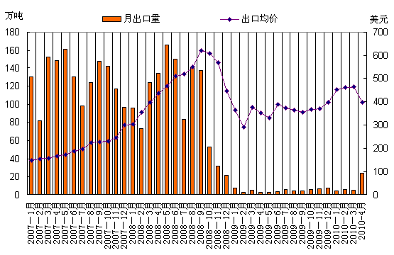 4月份國內(nèi)鋼材市場沖高回落,因此對焦炭等原料采購積極性不高,盡管受煤價支撐焦炭價格基本沒有下調(diào),但是成交情況不樂觀,滯銷嚴(yán)重,出口意向漸濃。另外,4月份國際鋼材市場回暖,歐盟27國粗鋼產(chǎn)量為1542萬噸,同比增長64%,環(huán)比下降0.8%;獨聯(lián)體粗鋼產(chǎn)量為925萬噸,同比增長28%,環(huán)比增長0.4%,因此焦炭需求量較大。同時,國際煉焦煤價格也相對較高,澳大利亞主焦CIF價230美元左右,高成本支撐國際焦炭價格過高,因此國外鋼廠把采購目光轉(zhuǎn)向中國,使得中國焦炭出口領(lǐng)域在蕭條了一年多以后迎來第一個春天。