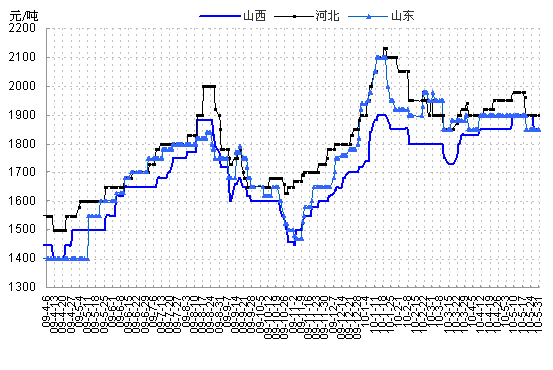 【華北地區(qū)】5月份華北地區(qū)焦炭市場走勢較弱。月初,唐山地區(qū)執(zhí)行河北焦炭市場指導(dǎo)價格,二級冶金焦含稅出廠價已達1980元,但鑒于鋼材市場持續(xù)疲軟,鋼廠普遍虧損,被迫無奈之余,鋼廠只能將壓力向原料市場轉(zhuǎn)移,不斷打壓焦炭價格,大部分鋼廠采取限采、停采的措施迫使焦炭降價。焦化企業(yè)庫存日漸增多,逐漸接受鋼廠的降價,本月以來華北大部分地區(qū)焦炭價格下調(diào)了80-100左右,成交仍不樂觀,后期是否能夠好轉(zhuǎn)仍要看鋼材市場的后市。