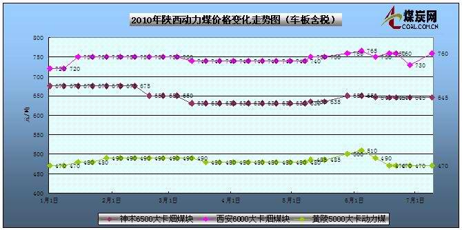 | 黃陵 | 動(dòng)力煤 | 5000 | 32 | 26-32 | 0.5 | 470 | 車(chē)板價(jià) | ||