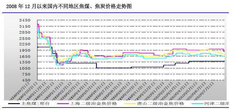 山西河津地區(qū)二級冶金焦出廠含稅價(jià)1650元/噸,一級冶金焦出廠含稅價(jià)1750元/噸;呂梁二級冶金焦1630元/噸;臨汾一級冶金焦現(xiàn)車板含稅價(jià)1830元/噸,二級冶金焦出廠含稅價(jià)1750元/噸;長治二級冶金焦出廠含稅價(jià)1650元/噸,一級冶金焦?jié)q車板含稅價(jià)1700元/噸;介休二級冶金焦出廠含稅價(jià) 1700元/噸,一級冶金焦出廠含稅價(jià)1800元/噸。河北唐山二級冶金焦1650-1700元/噸,準(zhǔn)一級冶金焦1800-1850元/噸,到廠價(jià);邯鄲二級冶金焦1700元/噸,準(zhǔn)一級冶金焦 1800元/噸,到廠價(jià);邢臺(tái)準(zhǔn)一級冶金焦1810-1850元/噸,出廠含稅價(jià)。河南濟(jì)源地區(qū)二級冶金焦車板含稅價(jià)1850元/噸;安陽地區(qū)二級冶金焦出廠含稅價(jià)1850元/噸;平頂山地區(qū)大型主導(dǎo)焦化企業(yè)二級冶金焦出廠含稅價(jià)1700-1800元/噸左右,下降100-150元/噸。四川攀枝花地區(qū)二級冶金焦主流價(jià)格在1550元/噸。貴州六盤水地區(qū)二級冶金焦出廠價(jià)格1650元/噸。山東淄博二級冶金焦出廠含稅價(jià)1700元/噸;東阿地區(qū)國標(biāo)一級冶金焦出廠含稅價(jià)2100-2200。上海二級冶金焦含稅價(jià)格1950元/噸。