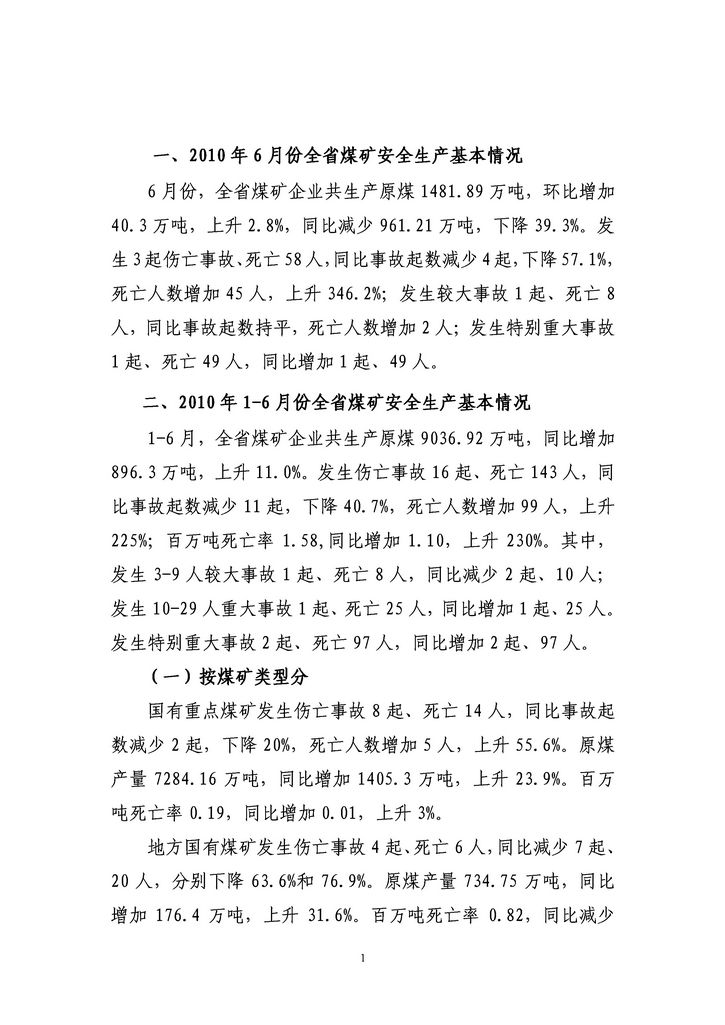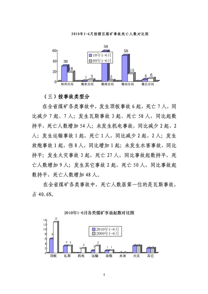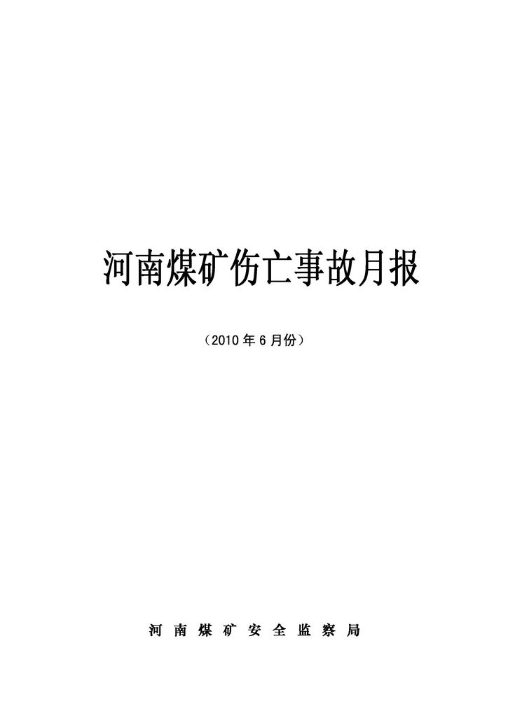 河南煤礦傷亡事故月報(bào)(2010年6月份)