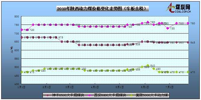 據(jù)了解神木6500大卡38塊,西安貨場不含稅價在730-760元/噸之間,黃陵5300大卡電煤坑口不稅價470元/噸;銅川5500大卡動力煤出礦不含稅價460元/噸。韓城5000大卡電煤出礦含稅價500元/噸。