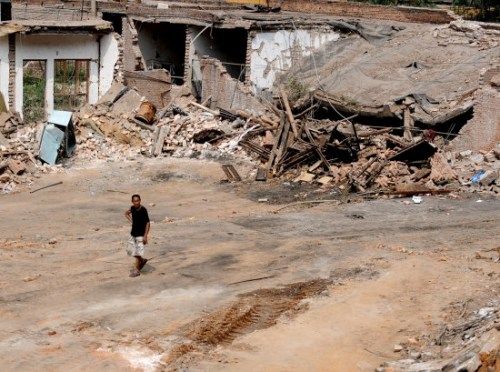 7月31日,工人李福榮從爆炸現(xiàn)場走過。