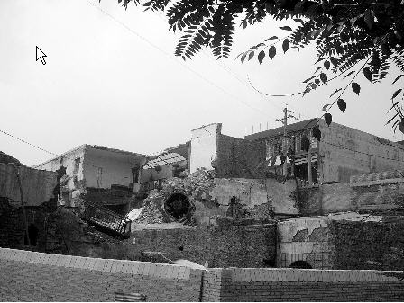 站在圍墻外亂石堆上向里張望,能看到房屋倒塌,鋼筋橫飛,以及那個(gè)曾被瓦斯爆炸熱浪掀上天又落到離原地四五米遠(yuǎn)的碩大鼓風(fēng)機(jī)。