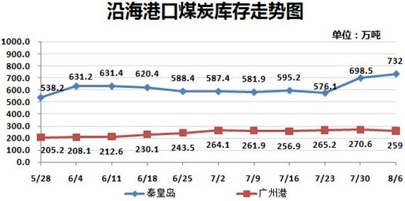 本周,華南地區(qū)煤炭供應(yīng)繼續(xù)保持寬松,需求小幅增加,庫存小幅下降。截至8月6日,廣州港煤炭庫存259萬噸,較上周下跌4.3%。