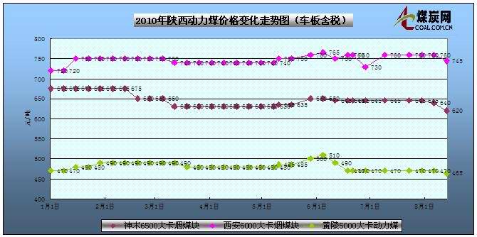 | 黃陵 | 動力煤 | 5000 | 32 | 26-32 | 0.5 | 465 | 車板價 | ||