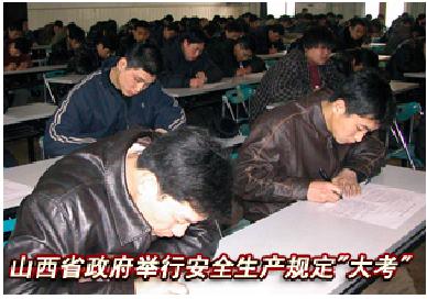 此次考試是山西省委、省政府認真落實 《國務院關于進一步加強企業(yè)安全生產(chǎn)工作的通知》精神,進一步推動全省學習貫徹安全生產(chǎn)制度規(guī)定的重要舉措。上午9時整,考試開始。考試時間是120分鐘。