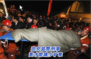 怎樣才能遏制礦難的發(fā)生?在我看來,應(yīng)該出臺這樣的規(guī)定:發(fā)生礦難就追究監(jiān)管部門領(lǐng)導(dǎo)的刑事責(zé)任。死30人判10年,死50人判無期,死100人以上判死刑,而且立即執(zhí)行。如果執(zhí)行這樣的規(guī)定,我相信中國的礦難,將會減少百份之九十以上。