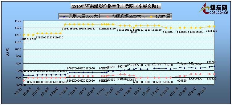 | 河南永城 | 無煙原煤 | 5500大卡,硫<0.6%,揮發(fā)分:8-10% | 760 | _ | 車板含稅 | |