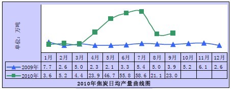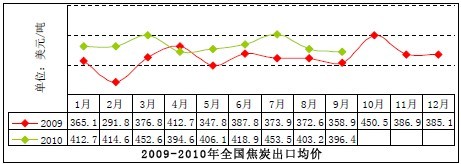 9 月份,鋼鐵生產(chǎn)持續(xù)走低,焦炭日均產(chǎn)量卻不降反升,導(dǎo)致焦炭市場(chǎng)再次跌入下行通道,值得一提的是,大顆粒焦炭均價(jià)逆市上揚(yáng),表明在中小高爐生產(chǎn)受限的同時(shí),大高爐生產(chǎn)相對(duì)旺盛,焦炭出口出現(xiàn)小幅反彈,出口均價(jià)繼續(xù)小幅下降。產(chǎn)能過剩無疑是焦炭市場(chǎng)下跌的主要原因,四季度鋼鐵生產(chǎn)維持低位幾成定勢(shì),限產(chǎn)保價(jià)將成焦炭行業(yè)下一階段的基調(diào),鋼焦生產(chǎn)同步趨緩,煉焦煤需求將呈減弱趨勢(shì)。