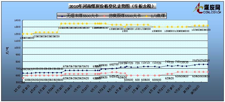| 河南永城 | 無煙原煤 | 5500大卡,硫<0.6%,揮發(fā)分:8-10% | 760 | _ | 車板含稅 | |