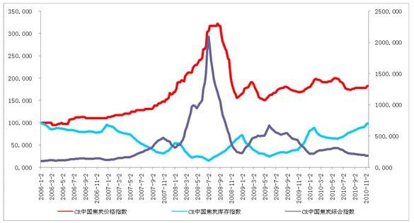 注:2010年焦炭庫存量進(jìn)行了修正,因此該年度CR焦炭庫存指數(shù)有所變化。