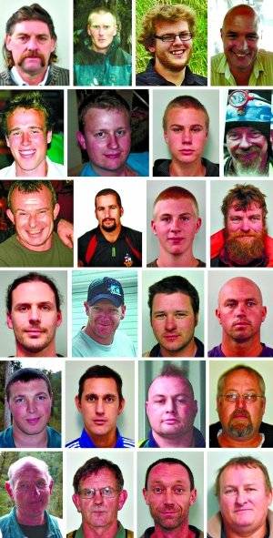 22日,新西蘭警方公布了29名被困礦工中24人的照片。