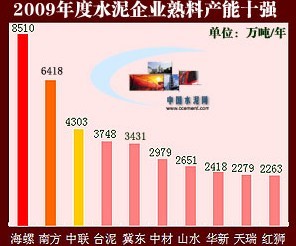 由中國水泥網(wǎng)發(fā)布的2009年中國水泥企業(yè)熟料產(chǎn)能百強(qiáng)排行評(píng)選后在行業(yè)內(nèi)引起了很大的反響,影響深遠(yuǎn)。不僅讓水泥企業(yè)了解到與競爭對手的差距,也給企業(yè)自身發(fā)展帶來動(dòng)力。