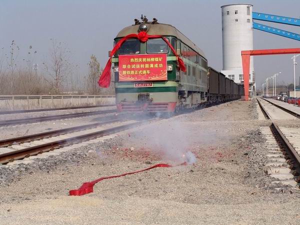 伴隨著一聲長鳴,東風(fēng)7787號列車緩緩駛出楊柳煤礦,鐵路專用線也正式通車。