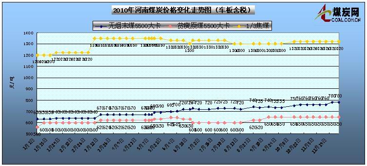 | 河南焦作 | 無(wú)煙原煤 | 5600大卡,硫≤0.8%,揮發(fā)分≤7% | 760 | - | 車板含稅 | |
