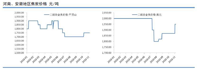 東北地區(qū):本周東北地區(qū)焦炭市場(chǎng)較穩(wěn)運(yùn)行,焦炭?jī)r(jià)格稍漲,主要是由于冬季電廠儲(chǔ)煤以及民用煤的快速增加導(dǎo)致煤炭偏緊,給焦炭造成更大的成本壓力所致,F(xiàn)黑龍江地區(qū)二級(jí)冶金焦主流出廠報(bào)價(jià)1850元;營(yíng)口地區(qū)二級(jí)焦報(bào)價(jià)1850-1900元;現(xiàn)鞍鋼準(zhǔn)一級(jí)冶金焦采購(gòu)到廠價(jià)2060元;北臺(tái)鋼鐵二級(jí)焦采購(gòu)到廠1900-1950元。鋼廠方面稱東北地區(qū)受節(jié)能減排拉閘限電影響較小,鋼鐵企業(yè)生產(chǎn)穩(wěn)步進(jìn)行,但目前鋼材市場(chǎng)疲軟,成交不佳,目前焦炭采購(gòu)價(jià)格上漲空間不大,后期煤焦市場(chǎng)依然較穩(wěn)運(yùn)行為主。