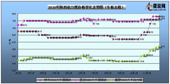 | 黃陵 | 動(dòng)力煤 | 5000 | 32 | 26-32 | 0.5 | 560 | 車板價(jià) | ||