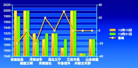 12月15日與12月21日國內(nèi)部分生產(chǎn)企業(yè)出廠價格對比圖(單位:元/噸)