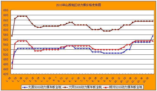 2010年山西地區(qū)動(dòng)力煤價(jià)格走勢(shì)圖