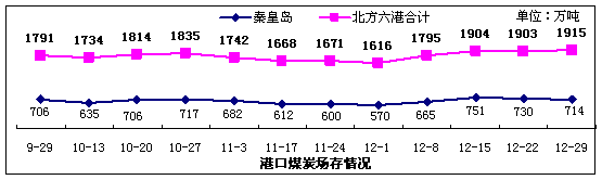 今后一段時(shí)期,隨著冬季用煤高峰來臨,煤炭需求繼續(xù)上升。調(diào)入方面,鐵道部要求各鐵路局繼續(xù)加大對(duì)煤炭等重點(diǎn)物資運(yùn)輸運(yùn)力傾斜力度,特別是對(duì)京津唐、湖南、湖北、江西、重慶等地區(qū)的電煤要重點(diǎn)組織,確保電廠用煤需求。供應(yīng)方面,國家煤監(jiān)局組織的兼并重組和整合技改煤礦安全專項(xiàng)監(jiān)察活動(dòng)仍在繼續(xù),而國家安委會(huì)近日下發(fā)通知要求做好兩節(jié)期間安全生產(chǎn)工作,安監(jiān)力度從嚴(yán)將在一定程度上影響煤炭供給。港口方面,近期北方港口受大風(fēng)大霧等惡劣氣候影響封航較多,這將影響港口轉(zhuǎn)運(yùn)。總體來看,預(yù)計(jì)主要港口煤炭庫存或?qū)⒒厣?/P>