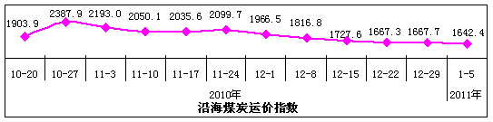 本周,沿海煤炭運(yùn)價(jià)小幅回落,主要港口煤炭庫存略有下降。近期,全國降溫天氣仍在持續(xù),特別是南方部分地區(qū)出現(xiàn)雨雪天氣,部分地區(qū)出現(xiàn)凍雨,這導(dǎo)致全國用電量有所提高,電廠日耗煤量上升,并且隨著春節(jié)臨近,各煤炭消費(fèi)企業(yè)補(bǔ)庫存意識增強(qiáng)。從調(diào)入看,各煤礦生產(chǎn)單位完成全年任務(wù)量后,為確保安全生產(chǎn),開始限產(chǎn),同時(shí)國家安委會(huì)下發(fā)做好兩節(jié)期間安全生產(chǎn)工作的通知后,煤礦安監(jiān)力度繼續(xù)從嚴(yán),而惡劣天氣也在一定程度到影響到山西、內(nèi)蒙古的煤炭調(diào)出。港口方面,近期天氣良好,使前期因惡劣天氣導(dǎo)致不能正常走靠的船舶,恢復(fù)正常發(fā)運(yùn),煤炭運(yùn)輸中轉(zhuǎn)順暢。因此,主要煤炭港口庫存略有下降。