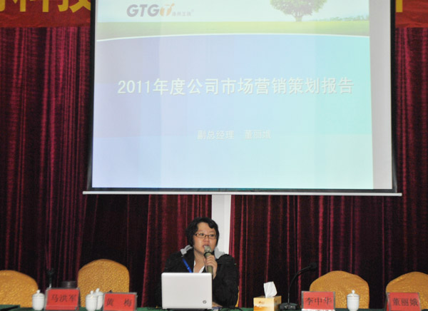 公司副總經(jīng)理董麗娥女士在大會中作銷售工作總結(jié)報告