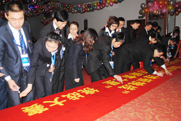 各區(qū)域經(jīng)理在“挑戰(zhàn)百萬銷售之星大賽”中踴躍簽名