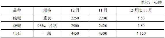 表 2 2010年 12月基本化學(xué)原料市場(chǎng)價(jià)格情況