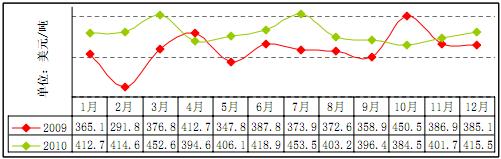 圖 3 2009-2010 年全國(guó)焦炭出口均價(jià)