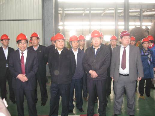上圖:前排左二安監(jiān)總局黨組成員、總工程師黃毅在青島磐石壓力容器和救生艙車間參觀,前排左三平度市市長于顯祥,前排左一青島磐石集團(tuán)董事長李德平等陪同。