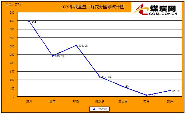 2009年我國(guó)進(jìn)口煤炭分國(guó)別統(tǒng)計(jì)圖