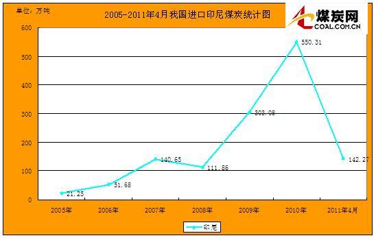 2005-2011年4月我國進(jìn)口印尼煤炭統(tǒng)計(jì)圖