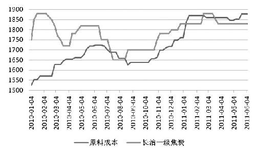 焦炭原料成本與焦炭?jī)r(jià)格比較